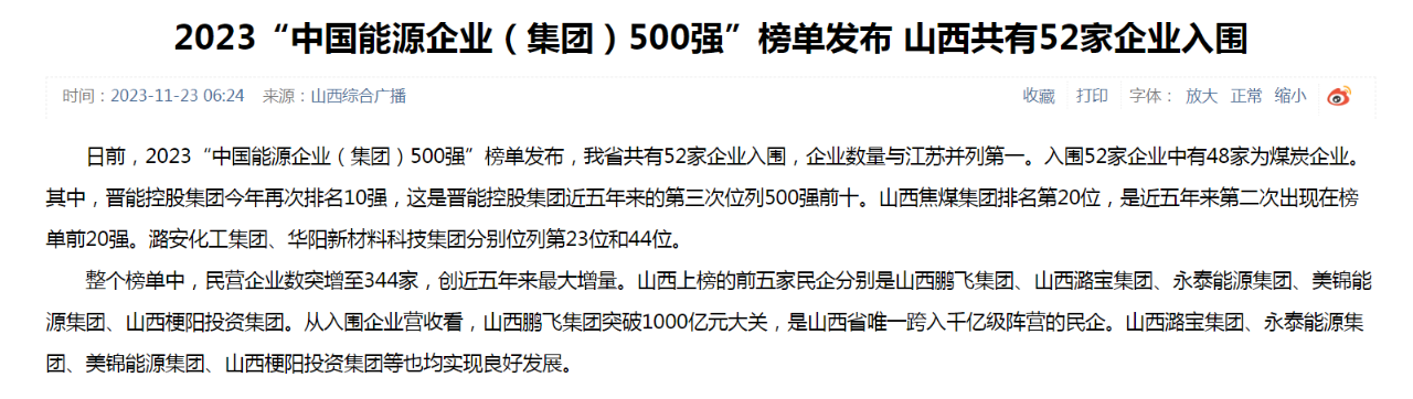 (原标题:孝义4户企业入榜2023中国能源企业(集团)500强)