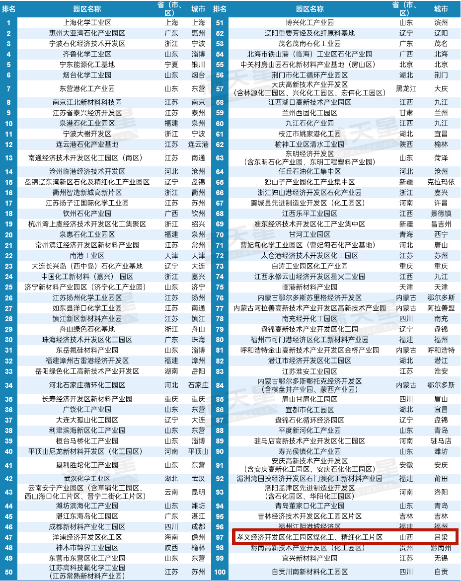 10月9日,赛迪顾问新材料产业研究中心发布《2025化工园区高质量发展研究》报告及2025化工园区综合竞争力百强评价结果,孝义经济开发区化工园区入榜,位列第97位,成为山西唯一入榜的化工园区。