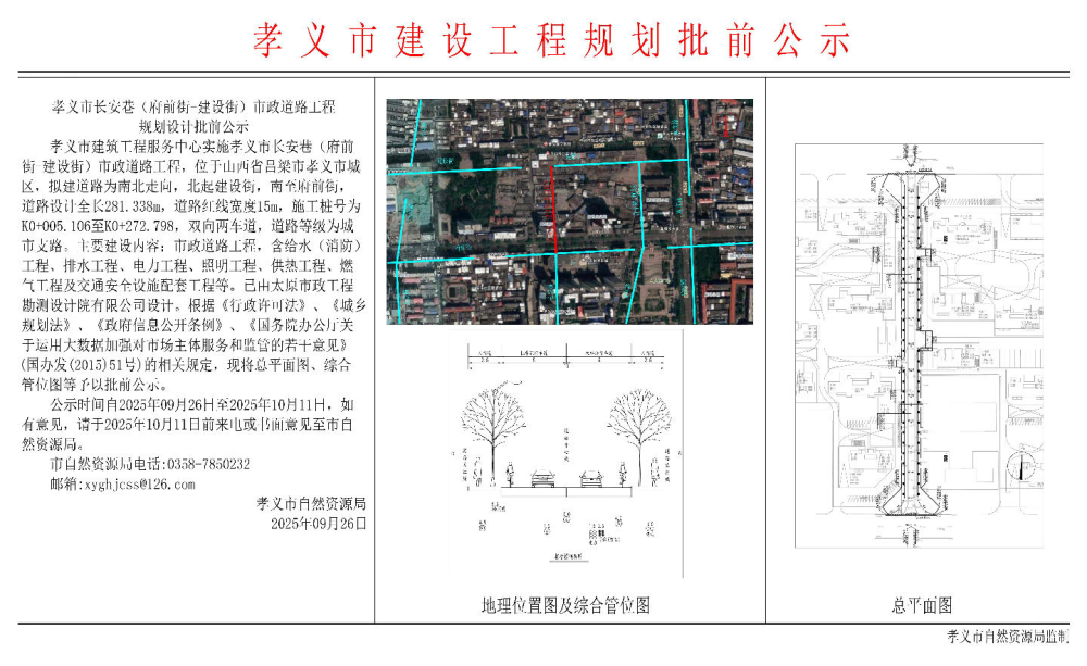 孝义市自然资源局关于孝义市长安巷(府前街-建设街)市政道路工程规划设计批前公示