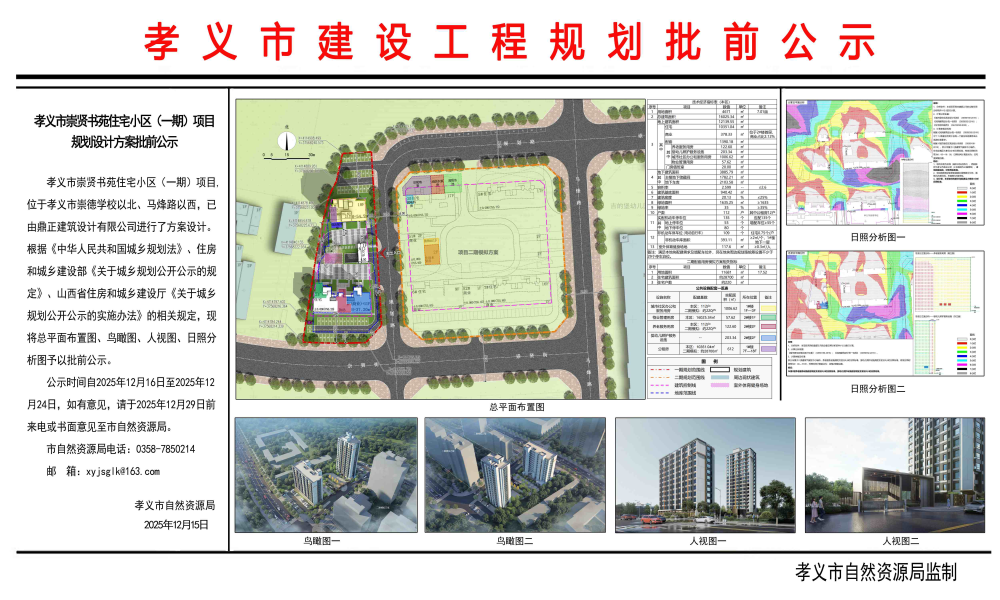 孝义市自然资源局关于孝义市崇贤书苑住宅小区(一期)项目规划设计方案的批前公示