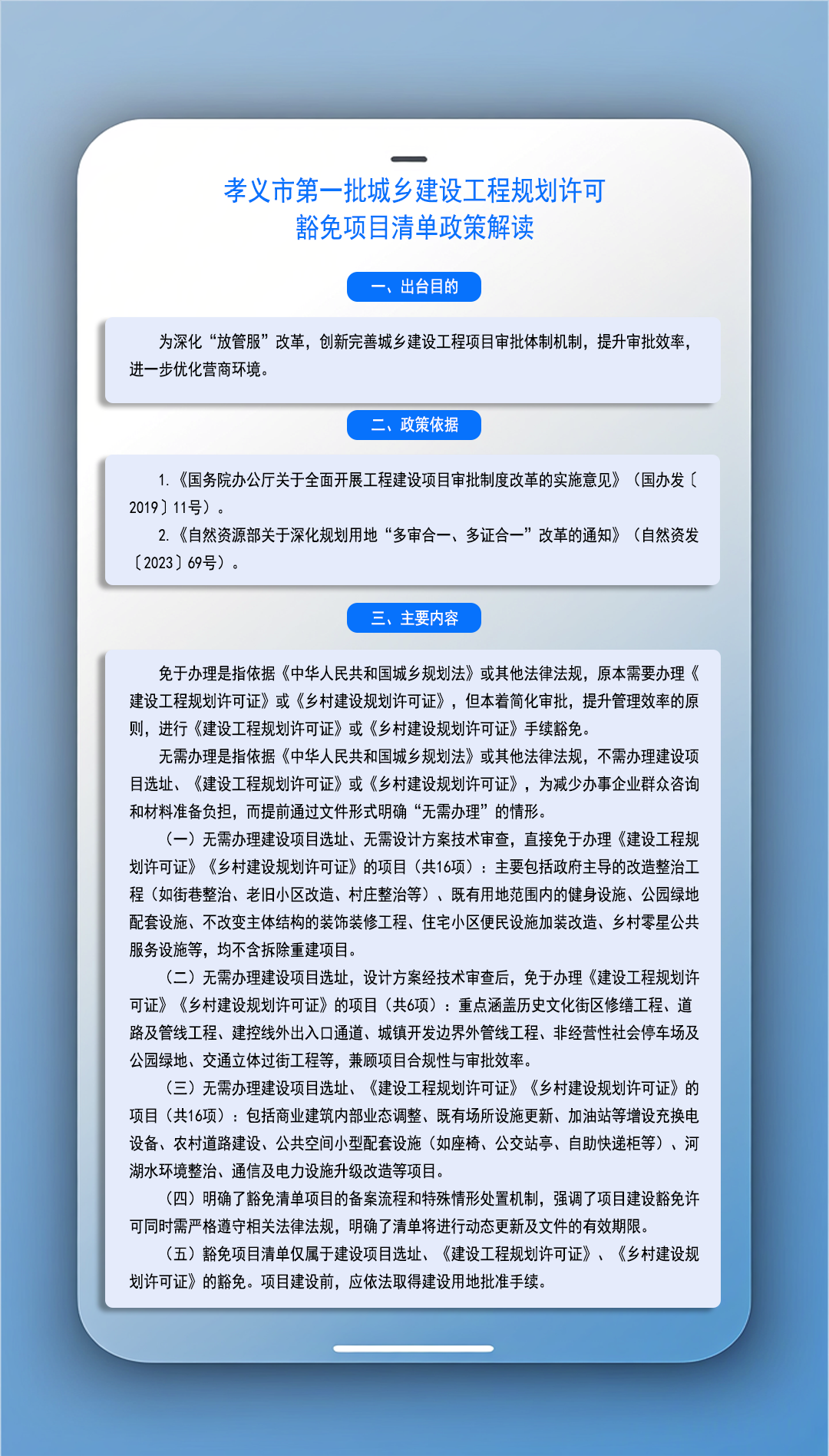 文件链接:孝义市人民政府办公室关于公布孝义市第一批城乡建设工程规划许可豁免项目清单的通知